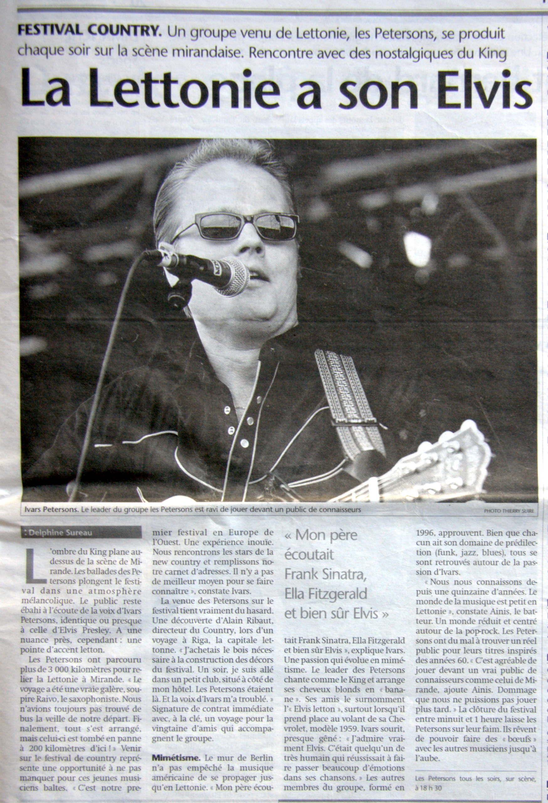 2004.g. 9.-14.jūlijā Dienvidfrancijas pilsētā Mirandē notiek viens no lielākajiem kantri mūzikas festivāliem Eiropā MIRANDE 2004. Šajā festivālā viesu sarakstā uzaicināts piedalīties arī Ivars Pētersons ar grupu PETERSONS BAND. Vietējā pilsētas futbola stadionā uzbūvēta apjomīga skatuve, uz kuras sešus vakarus pēc kārtas muzicē grupas no ASV, Kanādas, Francijas, Beļģijas, Luksemburgas, Latvijas u.c. Uz skatuves var redzēt tādus pasaulē slavenus māksliniekus kā Bufallo C. Wayne, Bill Wyman & Rhythm Kings, Albert Lee, Mike Sanchez, u.c. Grupa PETERSONS BAND uz skatuves uzstājas 6 dienas, katru dienu sniedzot stundu garu koncertu. Festivālu apmeklē vairāk kā 10 000 kantri mūzikas cienītāju no visas pasaules. www.country-musique.com